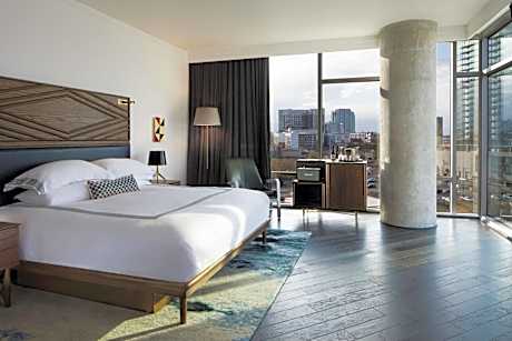 Thompson Nashville, a stylish boutique hotel part of Hyatt, brings a blend of modern luxury and Southern charm to Nashville's vibrant Gulch neighborhood. This hotel offers an unparalleled experience with its scenic rooftop bar and contemporary guest rooms, all within the heart of Music City.