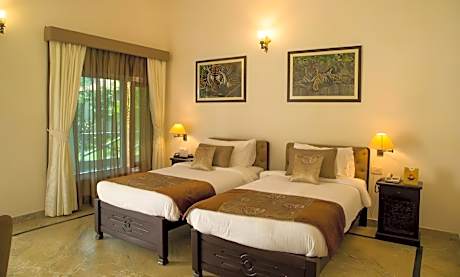 Tiger's Den Resort provides flawless service and all the necessary facilities for visitors. Stay connected with your associates, as complimentary Wi-Fi is available during your entire visit. To facilitate your arrival and departure, you can pre-book airport transfer services prior to checking in.The resort offers taxi and car hire amenities for your ease in navigating around Bandhavgarh.When arriving by car, you'll be grateful for the on-site complimentary parking at resort. Should you require it, the tours can even assist you in booking tickets and securing reservations for the finest shows and events in the vicinity. Whether it's an extended stay or simply needing fresh attire, dry cleaning service and laundry service provided by resort ensures your cherished travel garments stay spotless and accessible. Your stay will be comfortable with the presence of room service and daily housekeeping as an in-room amenity for your relaxation and enjoyment.In order to ensure the utmost level of relaxation, the guestrooms feature an inviting design and are equipped with all basic necessities, creating a delightful stay experience. To ensure your satisfaction, certain rooms in the resort come fitted with air conditioning for a more pleasant stay.Selected rooms offer in-room amusement like television as a source of entertainment for guests to enjoy. Within specific rooms, a refrigerator and a coffee or tea maker is conveniently available for your use. You'll be pleased to know that select guest bathrooms offer bathroom amenities such as toiletries, ensuring a comfortable stay. Start your day stress-free at Tiger's Den Resort as breakfast is made available for you on the premises.Various excellent meal offerings at resort ensure that enticing and easily accessible options are constantly available. Visitors wishing to create their personal culinary delights will appreciate the on-site BBQ facilities provided at this establishment.Tiger's Den Resort provides a superb assortment of leisure amenities for guests to enjoy. Unwind and conclude each day delightfully by stopping by massage, spa and sauna, ensuring a soothing experience.Unwind by the pool at resort and cherish a leisurely moment.