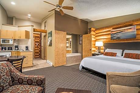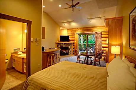 A kitchenette with dining area is featured in this room. A flat-screen TV with cable is provided.