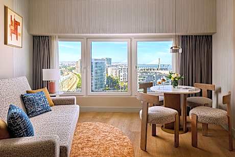 Tivoli Oriente Lisboa Hotel provides contemporary accommodations within Lisbon’s iconic Parque das Nações, overlooking the Tagus River. It features an indoor pool with a hot tub, relaxation facilities and a refurbished fitness center. Renovated and soundproofed rooms at Tivoli Oriente Lisboa Hotel offer catchy interior decorations, most with designer furnishings and stunning views over Lisbon, the Tagus River or the business center avenue. They all include satellite TV channels and private bathrooms with bathtub or shower. Guests can enjoy enticing cocktails at the Sky Bar which provides panoramic views over Lisbon and the Tagus River. Popular landmarks nearby the hotel Tivoli Oriente Lisboa include the adjacent Vasco da Gama Shopping Center and Estação do Oriente Station. Lisbon International Airport is just a 5-minute drive away and 3 metro stops (10 minutes) away.