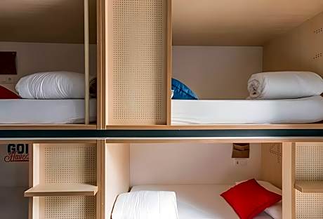 This smart, air-conditioned dormitory room features attractive décor with parquet floors and light wood, box-style bunk beds. It comes with free WiFi, and there is a bathroom for this room only. Bed linen is provided and towels can be rented on site.