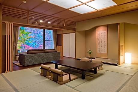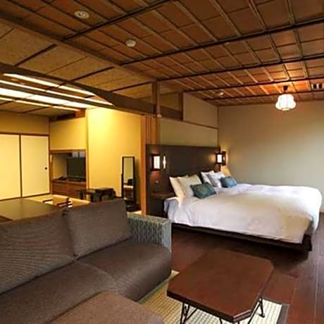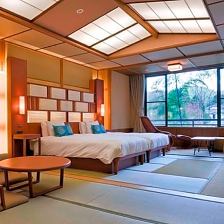 The spacious family room provides air conditioning, tatami, as well as a private bathroom featuring a bath and a shower. The family room features a tea and coffee maker, a wardrobe, a safe deposit box, a flat-screen TV, as well as river views. The unit offers 2 beds and 4 futons.