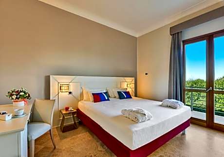 Set directly on the unspoiled Tuscan coast, the Tombolo Talasso Resort comes with a thalassotherapy center. Enjoy peaceful natural surroundings and relaxing wellness treatments. Tombolo Talasso’s 200-yard-long Blue Flag beach is well-equipped and just steps away from the hotel. Walk through pine and olive groves and arrive at the hotel’s beautiful outdoor pool. Head down into the grotto to discover Tombolo Talasso’s extensive wellness center. Relax in the thalassotherapy saltwater pools, featuring hydromassage and sensory functions, as well as counter-current swimming. Make the most of the Finnish sauna, Turkish bath, Roman bath and relax area in the wellness center. Beauty and massage treatments are available at extra charge, and exercise equipment is also available. Guests can enjoy free yoga classes from mid June -to mid-September. Children’s treatments are available in the spa. Tombolo Talasso’s Corallo restaurant offers regional cuisine made from ingredients sourced from neighboring estates, dishes with sea salts as well as a kids menu. The hotel also has a seaside terrace with exceptional views where you can enjoy lunch buffets and drinks. Almost 300 different wines can be found at the wine bar – enjoy them with local cheeses and meats.