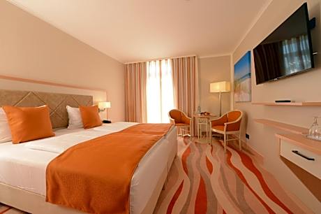 Cozily furnished room with a TV, safe and private bathroom. Some have a garden view or a view of the Baltic Sea.