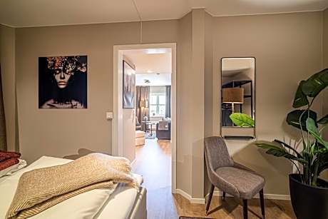 * Newly renovated Aksjemøllen by Classic Norway, has a unique atmosphere and charm. * Full refurbishment autumn 2021, this boutique hotel offers quality, personal service and stunning details that will amaze you. * All guest rooms are equipped with luxury Wonderland beds, high quality toiletries from Molton Brown, Nespresso coffee machines and tea products from Newby. * The hotel emphasizes the buildings unique history, and colors, moods and uniforms reflect the period of the early 20th century, when the mill activity in Lillehammer was high and essential in the growth of Lillehammer town. * In the cozy and stylish lobby, you can enjoy a local art gallery, while having refreshments from the lobby bar. You can also by local art and local glass products, if you are in a shopping mood. * In the neighborhood you will find real good restaurants, and the hotel has an own entrance to Egon restaurant, located in the old grinding house. * The top floor Toppen Sky bar offers high quality cocktails and signature drinks, while enjoying the spectacular panorama view of Lillehammer Town with its ski jump towers on one side, Mesna river and lake Mjøsa on the other side. Experience Aksjemøllen by Classic Norway!