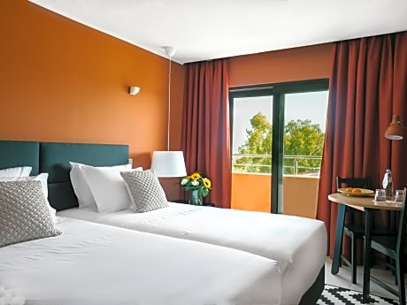 Totally renovated in 2018, the Hotel Topázio Mar is tis located in Albufeira and is just 500 metres from Aveiros Beach and 300 metres from an array of bars, restaurants, shops and a supermarket. Albufeira's old town is two kilometres away. The hotel features a pleasant outdoor area with a garden, swimming pool and pool bar where you can enjoy the Algarve's many sunny days. Guests can enjoy breakfast with a swimming pool view. The rooms and apartments of the Topazio Mar each include a satellite TV, minibar, safe, coffee machine, hairdryer, air conditioning and balcony. The apartments also have a kitchenette with a microwave.