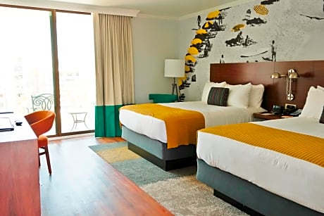 Town and Country Resort features an authentic mid-century modern design and friendly, SoCal vibe. Recently renovated and voted Best Resort in San Diego in 2024 by San Diego Magazine readers, the resort offers an entertaining stay with five restaurants and bars, including the award-winning restaurant, ARLO, on-site marketplace, a host of recreational amenities including a 4-story waterslide named “Twister, and pet-friendly accommodations. Guestrooms are equipped with plush pillowtop beds with 100% Egyptian cotton bedding, a flat-screen cable TV, a work desk, seating area, coffee machine, and safe. Guests can enjoy the a state-of-the-art fitness center and a business center. Located in the center of the city, Town and Country is just 5.6 miles from the airport and minutes to beaches and top attractions including SeaWorld San Diego, Balboa Park, and the San Diego Zoo.