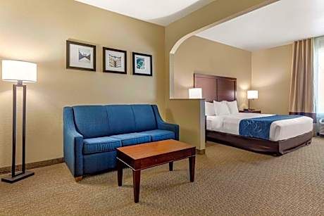 The Comfort Suites Waco Near University Area hotel is located less than 1.9 mi from Baylor University and within 3.1 mi of Magnolia Market at the Silos. This hotel is within a 10-minute drive of McLane Stadium, Waco Mammoth Site, Dr Pepper Museum, the Waco Convention Center, the Texas Ranger Hall of Fame and Museum, and the ExtraCo Events Center, home of the annual Heart O' Texas Fair & Rodeo and numerous other events throughout the year. This all-suite hotel features rooms with refrigerators, microwaves, coffee makers, hair dryers, irons and ironing boards. Keep your electronic devices charged with the recharge device including AC and USB outlets provided in all guest rooms. Guests will enjoy amenities like free wireless high-speed Internet access, free local calls, free daily newspaper and free coffee. Your Morning Breakfast is full of hot options, making breakfast at the Comfort Suites Waco Near University Area hotel the perfect way to start your day. Enjoy our free hot breakfast featuring eggs, meat, yogurt, fresh fruit, cereal and more, including your choice of hot waffle flavors. If you're leaving early, a Your Suite Success Grab & Go bag is available for the two hours prior to breakfast. Be sure to take advantage of the hotel's fitness center and outdoor pool. Business travelers will appreciate the business center. The meeting room accommodates up to 50 people for most events and business functions. On site laundry facilities are available for guest convenience. Additional nearby points of interest include Hawaiian Falls Waterpark, Cameron Park Zoo, Riverbend Park, Homestead Heritage, Waco Regional Tennis & Fitness center. The hotel is also close to an industrial area, the downtown area, golf courses, shops and hospitals. A variety of restaurants is within walking distance.