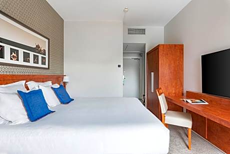 Welcome to the Crowne Plaza Lyon Hotel, where conviviality and comfort come together to offer you an unforgettable experience. Located in the heart of the 6th district, within the Cité Internationale, this establishment is the ideal place to relax and enjoy all the wonders of Lyon, 10 minutes from the city center and the Part-Dieu train station. Public transport and bicycles can be rented in front of the hotel, while car and bicycle parking is at the foot of the property (fees apply). When you enter, you are immediately greeted by a warm and modern decor. Whether you are here for business or pleasure,the Crowne Plaza Lyon hotel is the ideal place for you, the caring and dedicated team is here to meet all your needs. The spacious and bright rooms offer you all the necessary comforts: safe, ironing board, selection of coffee and tea, as well as free Wifi and access to a Chromecast service. Personalize your stay and treat yourself to a room with a shower, bath or balcony. A preference for a high floor? it is also possible! Finally, connecting family rooms and suites will be an undeniable asset for the organization of your family trip or weekend. The hotel is also known for the quality of its bedding, a good night’s sleep awaits you. The restaurant - bar offers a friendly experience with its superb room, its central bar and its large terrace facing the park. Throughout the day, the Chef prepares a varied menu with Italian flavors: dishes to share, daily menu... you will be delighted! Enjoy a refreshing cocktail and antipasti and enjoy a relaxing moment. If you are looking for something to do after a busy day, you can choose between a fitness center, a walk along the Rhone River or a race in the park with its entrance facing the hotel. Whether you’re here on business or for pleasure