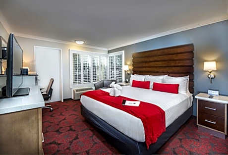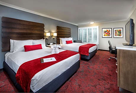 This Anaheim hotel is within a 10-minute walk of Disneyland. It have an outdoor swimming pool. Desert Palms Hotel & Suites Anaheim Resort features a refrigerator and microwave in every guest room. Cable TV and free Wi-Fi are also included in each room. Suites offer separate sitting areas. Guests can use the gym or the 24-hour business center at the Anaheim Desert Palms. Disneyland tickets are available from the front desk. The Anaheim Convention Center is across the street from the Desert Palms in Anaheim. The Honda Center entertainment and event venue is 10 minutes away.
