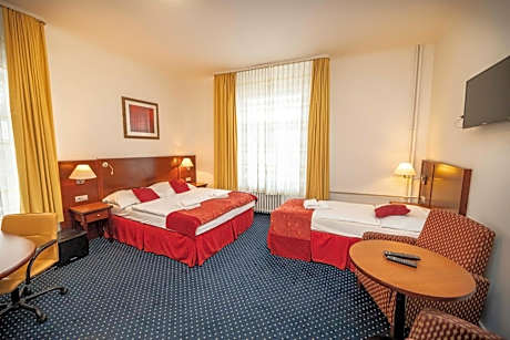 Located in Řevnice, 16 miles from Vysehrad Castle, Hotel Grand has accommodations with a garden, free private parking, a terrace and a restaurant. This 3-star hotel offers room service and a tour desk. The hotel has family rooms. At the hotel, rooms contain a closet. Featuring a private bathroom with a shower and free toiletries, rooms at Hotel Grand also feature free WiFi, while some have a garden view. At the accommodation, all rooms have a seating area. Buffet and à la carte breakfast options are available at Hotel Grand. Guests at the hotel will be able to enjoy activities in and around Řevnice, like hiking, fishing and cycling. Prague Castle is 17 miles from Hotel Grand, while St. Vitus Cathedral is 17 miles from the property. Vaclav Havel Prague Airport is 19 miles away.