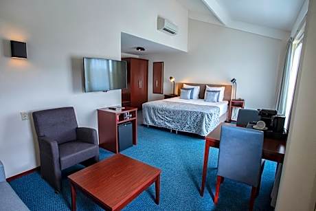 The intimate Wadden Hotel Greenside Texel is located on the edge of the picturesque village of De Koog, a 10-minute walk from the North Sea beach. The spacious hotel rooms are stylishly decorated and have a small fridge, a seating area with an LCD TV and a private bathroom with a bath and a separate shower. The rooms either have a balcony, a terrace or a French balcony. Guests can make free use of the fitness room. The solarium can be used for a surcharge.
