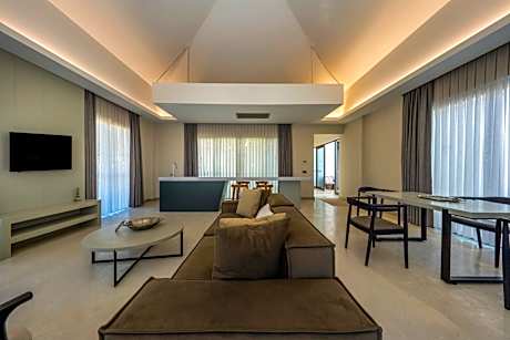 This air-conditioned triple room has a private access to the swimming pool. Guests can enjoy the view from the balcony with seating area. There are also two sun loungers in the balcony. Private bathroom comes with a shower, hairdryer and complimentary toiletries.