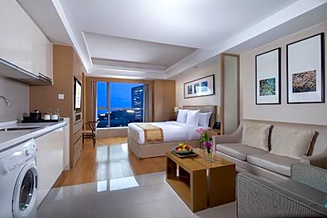 Great care is taken to ensure guests experience comfort through top-notch services and amenities. Remain linked during your visit by utilizing the complimentary internet access available. Prior to your check-in date, you can arrange airport transportation services, guaranteeing a seamless and efficient experience for both arrival and departure. Discovering Ningbo becomes even more accessible, thanks to the car hire amenities provided at the serviced apartment.The serviced apartment offers complimentary parking for guests who arrive with their own mode of transport.Effortlessly plan your daily activities and travel requirements with concierge service, express check-in or check-out, luggage storage and safety deposit boxes provided by the front desk services.Securing top-notch tickets and reserving prime dining spots become effortless through assistance from the serviced apartment's tours. For extended visits or whenever required, the dry cleaning service and laundry service ensures your preferred travel garments remain clean and accessible.During leisurely days and evenings, in-room amenities such as 24-hour room service, room service and daily housekeeping enable you to maximize your stay in the room.The serviced apartment is completely smoke-free. In limited designated zones, smoking is exclusively permitted. Crafted for coziness, every guestroom provides an array of features, guaranteeing a tranquil night's sleep while maintaining the level of comfort. For a more enjoyable stay, select rooms at serviced apartment are equipped with blackout curtains and air conditioning. For certain chosen rooms, guests can enjoy in-room amusement like television and cable TV as a part of their stay.Rest assured that your hydration needs will be met, as some guestrooms are equipped with a refrigerator, a coffee or tea maker and bottled water.Maintain your cleanliness and comfort using a hair dryer, toiletries and bathrobes available in select guest restrooms. Each morning at Pan Pacific Serviced Suites Ningbo, a scrumptious, homemade breakfast kick-starts the day. During your visit, indulge in a range of delightful culinary choices at serviced apartment to enhance your experience. Experience a fantastic evening effortlessly! Relish an entertaining night without venturing beyond the confines of the karaoke rooms.Indulge in the numerous pursuits available at Pan Pacific Serviced Suites Ningbo.Treat and spoil yourself by stopping at hot tub, steam room, spa and sauna for a memorable experience.Begin your holiday perfectly by taking a plunge into the swimming pool. Eliminate those holiday calories by stopping by serviced apartment and making use of their well-equipped exercise amenities.