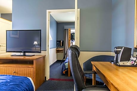 The Quality Inn hotel is a maritime country-style property. This Rivière-du-Loup hotel is minutes from the Rivière-du-Loup Golf Course and Musée du Bas-Saint-Laurent, a contemporary art and ethnology museum. Observe the variety of birds living in St. Lawrence Islands National Park. The small city of Rivière-du-Loup is located on the south shore of the Saint Lawrence River in Quebec and is a traditional stopping point between Quebec City and the Gaspé Peninsula. The hotel is minutes from a ferry that crosses the river to Saint-Siméon, Quebec on the north shore, AML boat cruises and whale watching cruises. A variety of restaurants and cocktail lounges are located in the surrounding area. Hotel amenities and features include free continental breakfast, free high-speed Internet access, free local calls, free weekday newspaper and free coffee. Guests of this Rivière-du-Loup hotel can enjoy relaxing in the indoor heated pool and hot tub. Be sure to take advantage of the hotel's on-site exercise room and biking and hiking path. Business travelers will appreciate conveniences like computer hookups in all rooms and access to copy and fax services. The meeting room accommodates up to 10 people. All guest rooms have coffee makers, desks, voice mail, hair dryers and cable television. In addition, some rooms come equipped with refrigerators and microwaves. Some rooms feature views of the Saint Lawrence River. Family suites feature bunk beds and full kitchenettes. Handicap accessible rooms are available. This is a 100 percent nonsmoking hotel. License Number(s): 2026-04-30, 219844