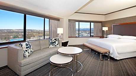 Located less than a mile from the Anchorage Museum of History & Art, this Anchorage city center hotel features an on-site restaurant and rooms with stunning mountain, city or Cook Inlet views. A 42-inch flat-screen cable TV is featured in all smoke-free over-sized guest rooms at Sheraton Anchorage Hotel. A refrigerator and coffee-making facilities are included. A comfortable desk and a fax/copier/printer are provided for convenience. Pet-friendly rooms are available. The Jade Steak & Seafood restaurant, offering casual American dining with an Alaskan flair, serves a full hot breakfast buffet, lunch and dinner. The Ptarmigan Lounge, located in the lobby, is open seven days a week and features a full cocktail menu, wine, beers on tap and appetizers. Room service is available in the evening. A 24-hour modern fitness center is located on the 15th floor and offers spectacular views of Anchorage and the surrounding mountains. Our 24-hour business center is available for guest use. A gift shop is located on site. Ted Stevens Anchorage International Airport is 15 minutes’ away. Elmendorf Air Force Base is 5 miles away. Alaska Zoo is 9 miles away.
