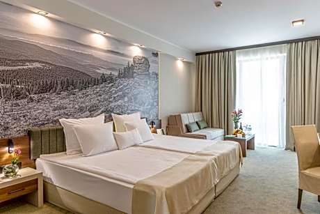 Spa Hotel Persenk features luxurious and stylish interior as well as high-quality services with elegantly furnished, comfortable and spacious rooms with breathtaking views over Devin or the Rhodope Mountains. All rooms provide LCD TV sets and internet access and are equipped with all necessary amenities. Experience fun and good music at the night club and bowling venue Downtown, which has great lightning and a fashionable interior. Savor local dishes accompanied by a wide selection of wines in a romantic intimate ambiance. The restaurant of the Persenk serves Bulgarian as well as European specialties. Spa Hotel Persenk offers its guests free spa access, including a mineral indoor pool, kids' pool, Finish sauna, infrared sauna, aroma steam bath, spa bath and fitness center. The town of Devin is 22 mi from the popular ski resort Pamporovo, boasting many hot springs and spa venues. Guests can enjoy Thermal Aquapark Persenk located at 1148 ft from the hotel.