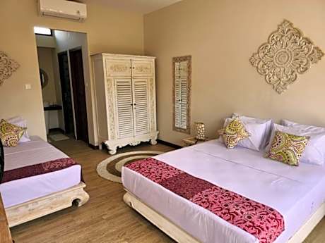 Featuring an outdoor swimming pool with a sun terrace, United Colors of Bali offers villas with different color themes. It is surrounded by tropical greenery and provides free Wi-Fi access. Nestled within the rice fields, the eco-resort is located only a 10-minute drive to Brawa Beach and Batubolong. It is also just a 15-minute drive to Seminyak area, while Ngurah Rai International Airport is a 40-minute drive away. An airport pick-up is available at a charge. Fitted with a terrace and views of the garden, air-conditioned villas provide a personal safe, a wardrobe and a seating area. Each villa has a dining area and a kitchenette which is equipped with a fridge, electric kettle and kitchenware. Private bathrooms come with hot/cold shower facilities and free toiletries. Guests can request for massage services or rent a motorbike to explore the area. United Colors of Bali can also assist with laundry, car rental and babysitting services. A tour desk and free private parking is available for guests’ convenience. A restaurant serving International dishes is located within a 10-minute drive from the property. Alternatively, the in-house chef can prepare lunch and dinner at an additional fee.