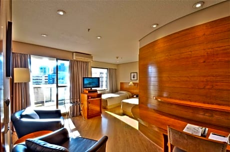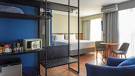 Transamerica Executive Paulista is 1 block from São Paulo’s Paulista Avenue and Brigadeiro metro station. It offers a restaurant with buffet and a la carte options, gym and rooftop pool. In all category we have a 43 inch Smart TV with cable channels. There is a mini-bar and a private bathroom with a hot shower. The daily breakfast buffet offers a variety of fresh fruits, breads and cold meats. For lunch and dinner, guests can enjoy international specialties, as well as a selection of drinks. Transamerica Executive Paulista Avenida Paulista is 5 minutes’ walk from MASP Museum and 1.2 mi from Ibirapuera Park. Congonhas Airport is 6.2 mi away.