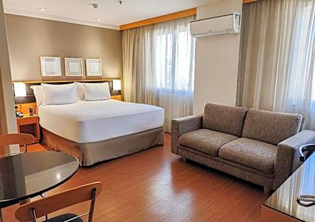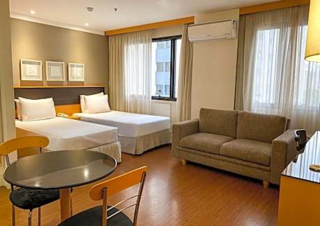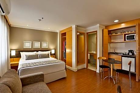 Just 2625 feet from Paulista Avenue, Transamerica Executive Jardins is located in a privileged area in the Jardins district and includes free WiFi. It provides a sauna, gym and restaurant, as well as a swimming pool. Some of the most important hospitals in São Paulo are within 1.2 mi from the hotel, such as HCor, Osvaldo Cruz and Sírio Libanes. All suites at Transamérica Executive Jardins are spacious and tastefully decorated with timber furnishings. They are equipped with air conditioning and feature an American-style kitchen with a microwave and mini-bar. Facilities include a 24-hour front desk service and a rooftop swimming pool, which provides views over Ibirapuera Park, located 1.2 mi away from the property. Congonhas Airport is 5 mi from the property, while Guarulhos International Airport is 18 mi away.