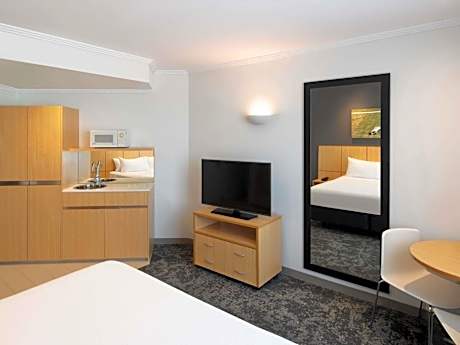Newly refurbished Mercure Sydney Bankstown is an ideal base for working and relaxing in Western Sydney. Discover comfortable rooms with a kitchenette, smart TV, Wi-Fi, air conditioning, ironing equipment, in-room safe, blow drier and toiletries. Enjoy complimentary parking, luggage storage, a 24-hour front desk, guest laundry, breakfast hosted in the Greenfields Bistro, 14 on-site restaurants, eight conference spaces, gym, kid’s center, medical center, pharmacy and barber, all a part of the Bankstown Sports Club. Guests can be charged to their rooms from most restaurants and can connect to complimentary high-speed Wi-Fi across all public areas. The hotel requires a valid ID to be presented upon check-in (rules by Bankstown Sports Club).