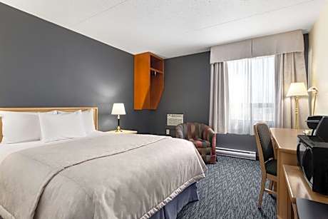 Featuring a swimming pool, waterslide, and hot tub, Travelodge by Wyndham Edmonton West offers free WiFi and an on-site fitness center. Edmonton city center is 7.5 mi away. Modernly furnished rooms are equipped with a flat-screen TV. Other amenities include a microwave, a fridge and a coffee machine. Guests can enjoy a delicious meal at Smitty's Family Restaurant, located at Travelodge by Wyndham Edmonton West. The on-site business center is available 24 hours a day. Free on-site parking is provided. Telus World of Science is 3.7 mi from this property. West Edmonton Mall is a 7 minute drive.