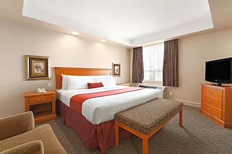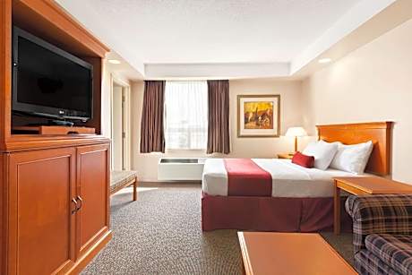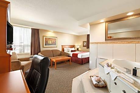 Featuring a fitness center and views of city, Travelodge by Wyndham Spruce Grove is located in Spruce Grove, 14 miles from West Edmonton Mall. With free WiFi, this 2-star hotel offers a 24-hour front desk and an ATM. The property has luggage storage space, and currency exchange for guests. The rooms come with air conditioning, a flat-screen TV with cable channels, a fridge, a coffee machine, a shower, free toiletries and a desk. Rooms contain a private bathroom with a hairdryer, while certain rooms come with a kitchen with a dishwasher. The rooms have a closet. Buffet and American breakfast options are available at the hotel. A business center and vending machines with snacks and drinks are available on site at Travelodge by Wyndham Spruce Grove. Fort Edmonton Park is 18 miles from the accommodation, while University of Alberta is 19 miles from the property. Edmonton International Airport is 27 miles away.