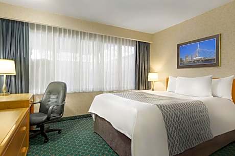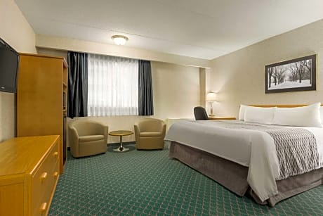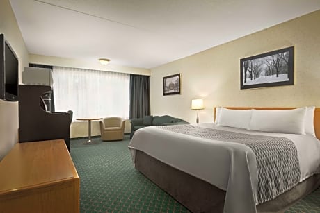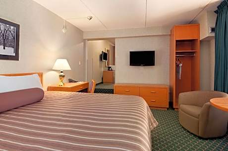 This Winnipeg, Manitoba hotel features rooms with a microwave and refrigerator. Canwest Park baseball stadium is only a 10-minute drive away. The Travelodge Winnipeg’s guest rooms include cable TV and free Wi-Fi. The spacious rooms also offer a coffee maker and a work desk. Winnipeg East Travelodge features an indoor tropical courtyard with a pool, hot tub and sauna. Doubles Fun Club is a large game room with pool tables, flat-screen TVs and video games. The Manitoba Children's Museum and Winnipeg Convention Center are a 10-minute drive away. Assiniboine Park, which houses the Assinibone Park Zoo and Leo Mol Sculpture Garden, is a 20-minute drive away