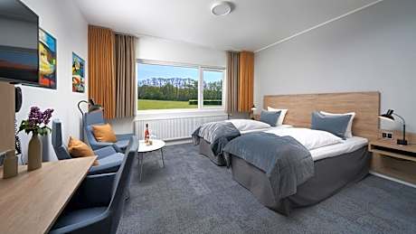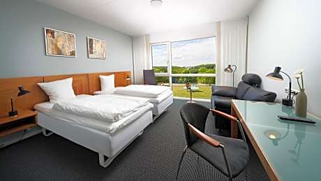 Trinity Hotel & Konference is located just a 10-minute drive from Fredericia, close to the motorway and with easy connections to the rest of Denmark. The hotel offers a scenic view of the green surroundings by the Old Little Belt Bridge. Here, you can enjoy a peaceful break between meetings and get some fresh air on the nearby trails and in the surrounding nature. The rooms are designed with a focus on comfort and functionality, featuring a desk, flat-screen TV, and tea and coffee facilities. Each bathroom has a shower and provides everything you need for a pleasant stay. You will always find free Wi-Fi at the hotel, both in the rooms and the common areas. Restaurant Lillebælt is renowned for its high culinary standards for breakfast, lunch, and dinner. Here, modern Nordic dishes are prepared with seasonal ingredients, ensuring you can enjoy delicious and nourishing meals—whether you’re staying for a night, attending a conference, or traveling on business. Once your work is done, the area around Fredericia and Lillebælt offers plenty of exciting experiences and activities to explore.