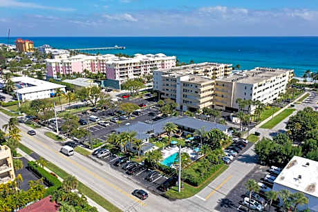 Bask in the Florida sun or take a refreshing swim in the pool surrounded by lush tropical landscaping at our quaint Tropical Isle Beach Resort. Located in Deerfield Beach, the resort is steps away from the award winning "Blue Wave" beach and promenade. It is one of a few beaches that features oceanfront restaurants and bars, in addition to various activities on the beach. The resort is also within a short walking distance of other retail, dining and entertainment venues. Our guest rooms offer pool or garden views with fully equipped kitchens or kitchenettes that provide you the convenience of cooking your meals, if you so prefer. The guest rooms also feature private bathrooms with a bath or shower. And, if you want to grill, the resort offers a BBQ area where you can grill your favorite foods. Other convenient features include: onsite laundry facilities; complimentary beach chairs and towels; WIFI; and free parking. Offshore fishing, boating and golfing are available within a short drive of the resort. We hope that you have a wonderful time at our resort and we will do our best to ensure you have a great experience and that you visit us again. The resort is conveniently located 30 minutes from the Fort Lauderdale-Hollywood International Airport while the Palm Beach International Airport is 38 minutes to the resort.
