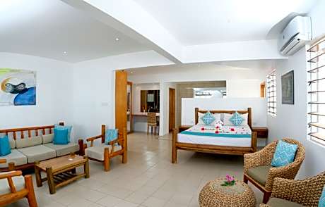 Set on 19 acres of tropical gardens, the adults-only Tropica island Resort features 2 restaurants, a horizon swimming pool and 3 bars offering panoramic ocean views. Guests enjoy free Wi-Fi in the public areas around the pool, Reception, main restaurant and bar. Located alongside a private beach, this boutique resort offers Fijian and contemporary architecture and beautifully landscaped gardens with water features. Guests have free use of kayaks, snorkeling equipment and standup paddle boards. All accommodations features handcrafted Fijian furnishings, quality bed linens and complimentary toiletries. Some rooms offer a patio and all rooms have an outdoor shower. Other guest facilities include an open-air dining room, Sunset Beach Bar right on the water's edge, and a day spa. There are daily activities and nightly entertainment such as live music, kava ceremonies, beach volleyball, beach boules, fish feeding, Fijian cooking demonstrations, village visits, snorkeling excursions, beach picnics and cultural activities. Located on Malolo Island, Tropica Island Resort is accessible via boat, helicopter or seaplane from Nadi.