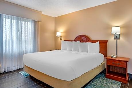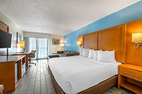 This Daytona Beach hotel is located on the Atlantic coast and offers direct beach access. It features a heated indoor and outdoor pool, and offers rooms with a private balcony. Daytona Lagoon is 1.5 mi away. A 40-inch flat-screen TV with HBO, free WiFi and a free in-room safe are included in every room at Resort Hotel Tropical Winds. The ocean view rooms include a microwave and mini-fridge along with the in-room coffee maker. Guests of Tropical Winds Resort Hotel can enjoy breakfast or lunch at the cafe, read a book from the hotel’s library or spend time in the games room. A business center and a tour desk with local area information are available. Daytona Beach Golf Club is a 15 minutes's drive from the hotel. Daytona International Speedway is a 16 minutes' drive away.
