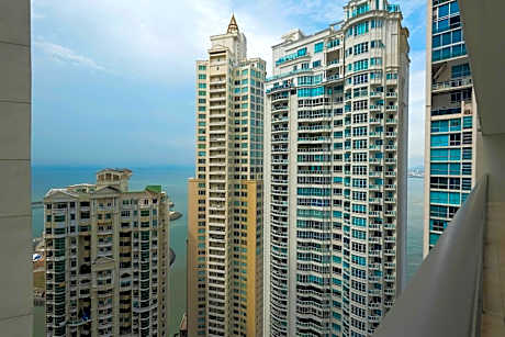Located on Panama Bay, this 5-star hotel features a variety of on-site restaurants. Spacious modern rooms boast private balconies and ocean views. JW Marriott Panama offers you a getaway in the heart of the business area in Panama, where you will enjoy infinity pools with majestic views of the Panamanian Bay and large balconies where you can relax while enjoying your stay. Each room provides a 42-inch flat-screen HDTV with a CD/DVD player at the JW Marriott Panama. Marble floors, granite countertops and a deep soaking tub are also provided. Our luxurious hotel is also noted for being family-friendly. Do not forget to delight your palate while touring our diverse gastronomy and mixology in our 3 restaurants and bars with the exquisite dishes developed by our Executive Chef. JW Marriott Panama offers its guests the possibility to relax in the large pool and deck area which also offers waterfront dining. A full floor of designer shops is offered for guests.