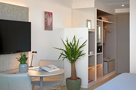 INNSiDE by Meliá Barcelona Apolo is located at the foot of Montjuïc, 7 minutes’ walk from Barcelona’s Ramblas. It offers a 24-hour reception and air-conditioned rooms with WiFi. Refurbished in 2023, the rooms at INNSiDE by Meliá Barcelona Apolo feature smart décor and wooden floors. Each one has a flat-screen TV, mini-bar, work desk and a private bathroom with a hairdryer. The hotel serves a varied buffet breakfast every morning. There is also a snack bar serving light meals in the evenings. Parallel Metro Station is next to the hotel, connecting you with the Fira Convention Center in 2 stops.