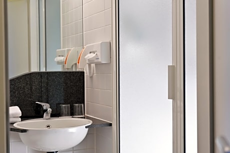 Modern room featuring a flat-screen TV, free WiFi and a private bathroom. A hairdryer and a cosmetic mirror are also provided.