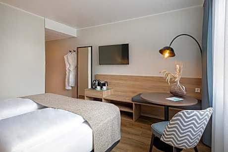 This 4-star, hotel lies directly opposite the Centro in Oberhausen, the largest leisure and shopping center in Europe. It offers an elegant restaurant. Bright, modern rooms at the Hotel Oberhausen Neue Mitte hotel feature a satellite TV, work desk and private bathroom. High speed WiFi is provided free of charge. A rich and varied breakfast buffet is available in the mornings. The restaurant offers Italian, regional and international dishes in the evenings, while drinks are available at the hotel bar. Bicycles can be rented for exploring Oberhausen. In good weather guests can relax on the outside terrace. Metronom Theater is 2789 feet from Hotel Oberhausen Neue Mitte. The Centro offers many shopping and leisure facilities, including the Sea Life Oberhausen Aquarium and Aquapark Adventure Pool.