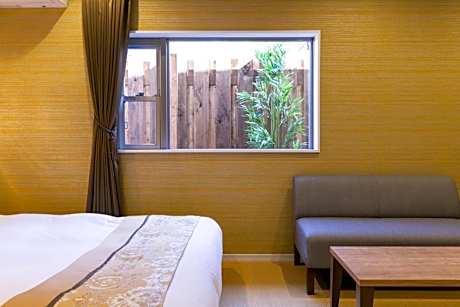 The spacious double room provides air conditioning, tatami, as well as a private bathroom featuring a bath and a shower. The unit offers 1 bed.