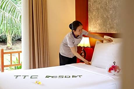 TTC Resort Ninh Thuan - Unlimited Access to Water Park provides flawless service and all the necessary facilities for visitors. Stay connected with your associates, as complimentary Wi-Fi is available during your entire visit. To facilitate your arrival and departure, you can pre-book airport transfer services prior to checking in. The resort offers taxi and car hire amenities for your ease in navigating around Phan Rang – Tháp Chàm (Ninh Thuận). When arriving by car, you'll be grateful for the on-site complimentary parking at resort.The resort offers reception amenities including concierge service, luggage storage and safety deposit boxes to ensure a comfortable stay for guests.Should you require it, the tours can even assist you in booking tickets and securing reservations for the finest shows and events in the vicinity. Whether it's an extended stay or simply needing fresh attire, dry cleaning service and laundry service provided by resort ensures your cherished travel garments stay spotless and accessible. Your stay will be comfortable with the presence of 24-hour room service, room service and daily housekeeping as an in-room amenity for your relaxation and enjoyment.To ensure the well-being and convenience of all visitors, smoking is strictly prohibited throughout the entire resort.Smoking is permitted solely in the specified smoking zones allocated by resort.In order to ensure the utmost level of relaxation, the guestrooms feature an inviting design and are equipped with all basic necessities, creating a delightful stay experience. To ensure a pleasant stay, a selection of rooms at resort come furnished with linen service, blackout curtains and air conditioning, all designed with your ease in mind.Several chosen accommodations at TTC Resort Ninh Thuan - Unlimited Access to Water Park have a balcony or terrace incorporated into the room design. In select rooms, visitors can enjoy a touch of amusement with the availability of television and cable TV for their entertainment needs.Within specific rooms, a refrigerator, bottled water, instant coffee, instant tea and mini bar is conveniently available for your use. Understanding the significance of bathroom facilities in enhancing visitor contentment, resort offers a hair dryer, toiletries, bathrobes and towels within a few chosen chambers. Each day, arise to a delightful complimentary morning meal at TTC Resort Ninh Thuan - Unlimited Access to Water Park.How about kicking off each day of your getaway with a delicious cup of coffee? At the resort, relish in the invigorating taste of a freshly brewed, excellent coffee. Various excellent meal offerings at resort ensure that enticing and easily accessible options are constantly available. Upon your arrival, don't miss experiencing bar for enjoyable in-house evening entertainment.Visitors wishing to create their personal culinary delights will appreciate the on-site BBQ facilities provided at this establishment.Throughout the day, engage in the entertaining activities available at TTC Resort Ninh Thuan - Unlimited Access to Water Park.Make sure to discover the readily available beach at resort. Unwind and conclude each day delightfully by stopping by massage, spa and sauna, ensuring a soothing experience.Unwind by the pool at resort and cherish a leisurely moment. Enjoy a refreshing beverage al fresco at resort's poolside bar savoring your preferred concoction.