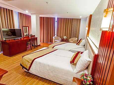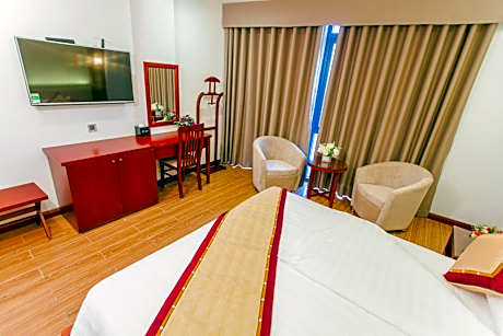 Tu Son Luxury Hotel provides flawless service and all the necessary facilities for visitors. Stay connected with your associates, as complimentary Wi-Fi is available during your entire visit.To facilitate your arrival and departure, you can pre-book airport transfer services prior to checking in.The hotel offers taxi and shuttle amenities for your ease in navigating around Tu Son (Bac Ninh). When arriving by car, take advantage of the hotel's convenient on-site parking facilities.The hotel offers reception amenities including express check-in or check-out and safety deposit boxes to ensure a comfortable stay for guests.Whether you're here for an extended stay or simply require fresh garments, the hotel ensures your cherished travel attire remains spotless and accessible with the convenience of laundry service located on the premises. Your stay will be comfortable with the presence of 24-hour room service, room service and daily housekeeping as an in-room amenity for your relaxation and enjoyment.Smoking is permitted solely in the specified smoking zones allocated by hotel.In order to ensure the utmost level of relaxation, the guestrooms feature an inviting design and are equipped with all basic necessities, creating a delightful stay experience. To ensure a pleasant stay, a selection of rooms at hotel come furnished with linen service, blackout curtains and air conditioning, all designed with your ease in mind. At Tu Son Luxury Hotel, various room configurations are available, featuring separate living room and balcony or terrace in some rooms. In select rooms, visitors can enjoy a touch of amusement with the availability of television and cable TV for their entertainment needs.Within specific rooms, a refrigerator, a coffee or tea maker, bottled water, instant coffee, instant tea and mini bar is conveniently available for your use.Understanding the significance of bathroom facilities in enhancing visitor contentment, hotel offers a hair dryer, toiletries and bathrobes within a few chosen chambers. Start your day stress-free at Tu Son Luxury Hotel as breakfast is made available for you on the premises.Various excellent meal offerings at hotel ensure that enticing and easily accessible options are constantly available.