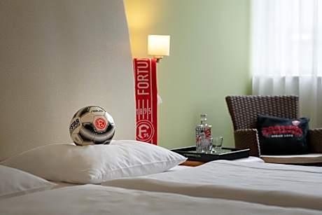 The hotel is integrated into Düsseldorf´s MERKUR SPIEL-Arena. The breakfast restaurant and the meeting rooms offer access & fantastic view into the stadium. The hotel is just a 15-minute underground ride from central Düsseldorf. It is within walking distance of the Messe Düsseldorf exhibition center and the CCD convention center. All 280 rooms are in a modern design and equipped with air conditioning, WLAN and some with refrigerator. In the morning you start with a vital breakfast, which is already included in the overnight price. The opening hours of the restaurant in the stadium and the Backstage Bar & Deli vary. Please inquire before your arrival if you plan to eat with us. The Tulip Inn Hotel im Stadion offers meeting and event space for up to 1,500 people.