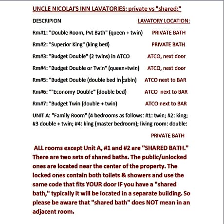 Located in Copper Center, Nicolai's Mine Camp features a garden, bar and free WiFi. Guests can enjoy garden views. All rooms are equipped with a coffee machine and a private bathroom with a shower and a hairdryer, while some rooms come with a kitchen equipped with a fridge. All guest rooms at the inn are equipped with a flat-screen TV with satellite channels. Guests at Nicolai's Mine Camp will be able to enjoy activities in and around Copper Center, like hiking and fishing. Valdez Airport is 103 miles away.