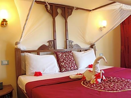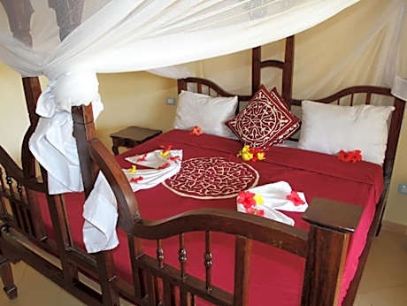 Featuring a veranda overlooking the lush garden, this self-standing room is decorated with thatched roof and traditional Zanzibar furniture.