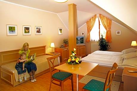 Providing quiet street views, Vadászkürt Panzió in Sopron offers accommodations and a shared lounge. Both free Wifi and parking on-site are available at the bed and breakfast free of charge. The bed and breakfast has private entrance. The bed and breakfast will provide guests with air-conditioned units with a desk, a kettle, a fridge, a minibar, a safety deposit box, a flat-screen TV, a balcony, and a private bathroom with a shower. Guests can have wine or champagne delivered to their room. At the bed and breakfast, all units have bed linen and towels. An American breakfast is available at Vadászkürt Panzió. During the colder months, guests can enjoy winter sports in the surrounding area. For guests with children, the accommodation provides outdoor play equipment. If you'd like to discover the area, hiking is possible in the surrounding area. Liszt Museum is 14 miles from Vadászkürt Panzió, while Esterházy Palace is 15 miles away.