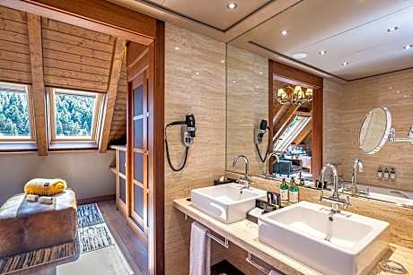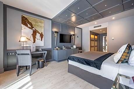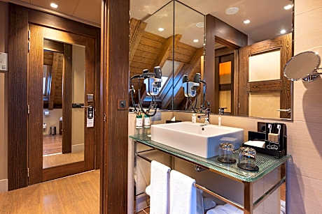 Royal Suite (1 Queen Bed, 2 Twin Beds and 1 Double Sofa Bed) is 1076 square feet and includes a double bed 131-150 width plus terrace, desk, satellite tv , hairdryer, tea and coffee making facilities , safe, bathrobes, and slippers.