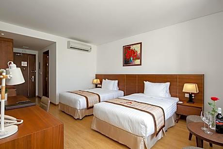 Val Soleil Hotel provides flawless service and all the necessary facilities for visitors. Stay connected with your associates, as complimentary Wi-Fi is available during your entire visit. When arriving by car, you'll be grateful for the on-site complimentary parking at hotel. The hotel offers reception amenities including concierge service, luggage storage and safety deposit boxes to ensure a comfortable stay for guests. Whether you're here for an extended stay or simply require fresh garments, the hotel ensures your cherished travel attire remains spotless and accessible with the convenience of laundry service located on the premises.The hotel's daily housekeeping ensures an excellent option for your stay.To ensure the well-being and convenience of all visitors, smoking is strictly prohibited throughout the entire hotel. In order to ensure the utmost level of relaxation, the guestrooms feature an inviting design and are equipped with all basic necessities, creating a delightful stay experience. To ensure a pleasant stay, a selection of rooms at hotel come furnished with linen service, blackout curtains and air conditioning, all designed with your ease in mind.In select rooms, visitors can enjoy a touch of amusement with the availability of television and cable TV for their entertainment needs.Within specific rooms, bottled water, instant coffee, instant tea and mini bar is conveniently available for your use.Val Soleil Hotel offers a hair dryer, toiletries and bathrobes in the restrooms of specific accommodations. Start your day stress-free at Val Soleil Hotel as breakfast is made available for you on the premises. Various excellent meal offerings at hotel ensure that enticing and easily accessible options are constantly available. Upon your arrival, don't miss experiencing bar for enjoyable in-house evening entertainment.Val Soleil Hotel provides a superb assortment of leisure amenities for guests to enjoy.Unwind by the pool at hotel and cherish a leisurely moment. Enjoy a refreshing beverage al fresco at hotel's poolside bar savoring your preferred concoction.Guests who enjoy maintaining their fitness regimen while on holiday can visit the fitness center provided by hotel.
