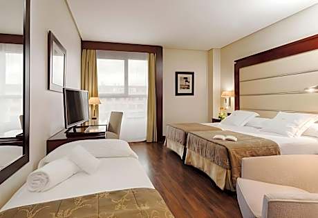 Hotel Valencia Center is 1312 feet from Valencia’s City of Arts and Sciences, 1.9 mi from the city center. It offers a sauna, gym and outdoor pool, and free Wi-Fi. The hotel is a 10-minute walk from Ayora Metro Station, which connects to the city center and the airport. It takes 5 minutes by bus to the beach or city center, and there is a bus stop opposite the hotel. All air-conditioned/heated (according season) rooms have a satellite TV, safe and mini-bar The hotel restaurant serves Mediterranean cuisine. There is a bar and room service is available. There is a 24-hour front desk and you can hire a car at the tour desk. On-site parking is available for an extra charge.