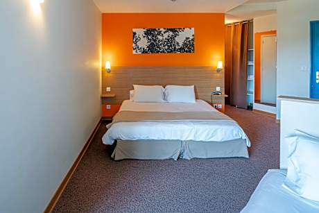 Close to the major southern roads and the city centres of Toulon and Hyères les Palmers, the hotel occupies a much envied position on the Varois coast. Comprising a total of 42 rooms, this air-conditioned hotel welcomes guests into a reception hall with 24-hour check-in and check-out service. The hotel offers a cloak room, breakfast room, conference facilities, Internet access, garage and a car park. The en suite rooms are remarkably spacious and most have terraces or balconies. Each room comes fully - equipped with a double bed, telephone, TV and a kitchenette with mini fridge. The rooms also have centrally regulated air conditioning and heating. Guests can make use of the hotel's lovely outdoor pool. A breakfast buffet is served daily in the breakfast room.