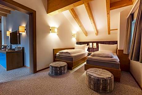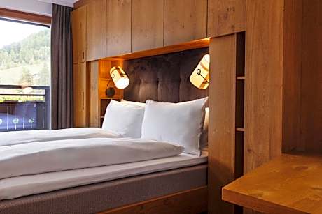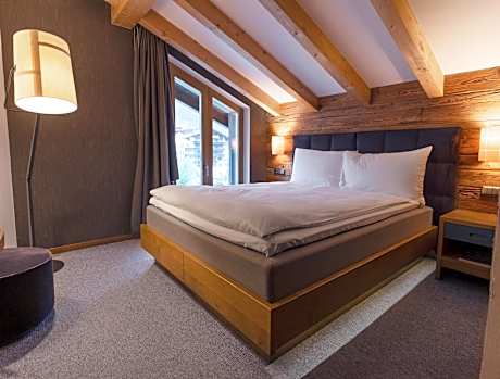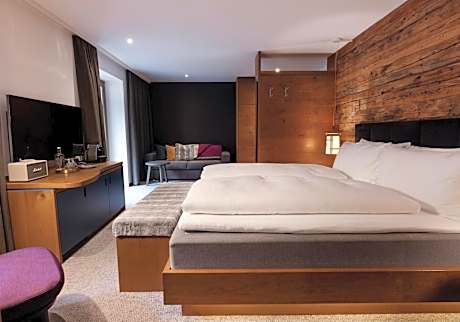 • 1 king-size bed • sitting area • modern bathroom with shower, toilet, hair dryer and cosmetic articles • bathrobe • floor heating • free Wi-Fi • free mini-bar • Nespresso coffee machine • partly with balcony with panoramic mountain views • Flat-screen TV with DVD Player • iPod docking station