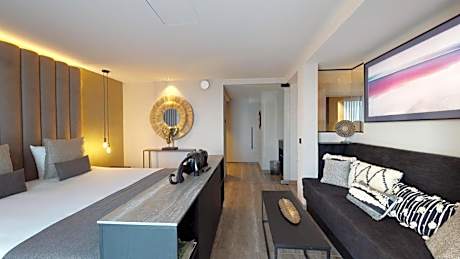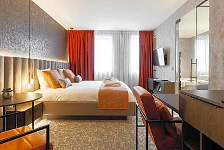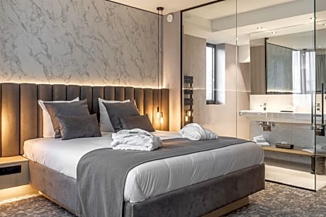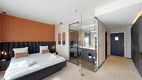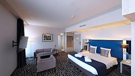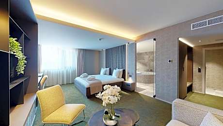This suite's special feature is the sauna. This suite consists of 1 living room, 1 separate bedroom and 1 bathroom with a bath or a shower and free toiletries. This suite features air conditioning, soundproof walls, flat-screen TV with cable channels, as well as chocolate for guests. The unit offers 1 bed.