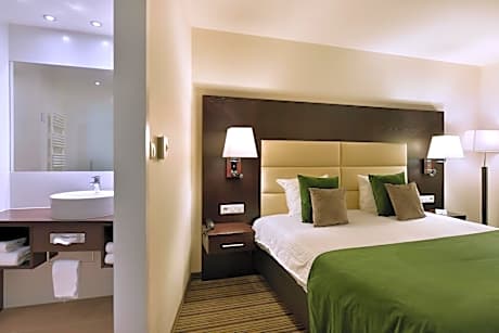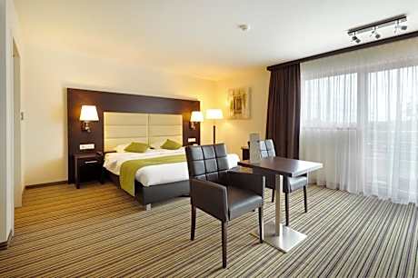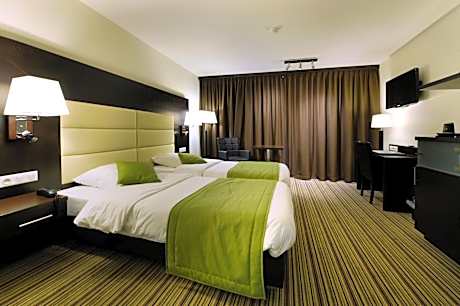 Hotel Charleroi Airport - Van Der Valk is located 10 minutes' drive from Charleroi Airport and benefits from a fitness center, a 24-hour front desk and free WiFi throughout. A shuttle service to Brussels South Charleroi Airport is available for a fee. Each of the soundproof rooms at Hotel Charleroi Airport - Van Der Valk has a seating area and a flat screen TV. The superior rooms include air conditioning and free use of a mini-bar stocked with soft drinks. This hotel features Brasserie-Restaurant Le Cent Quinze, which serves traditional French cuisine and seasonal specialties. A hot breakfast buffet is available daily for an extra charge. Courcelles-Motte Train Station is 1.1 mi away and the center of Charleroi is only a 10-minute drive away. Golf Château de la Tournette is 15 minutes’ drive from the Hotel Van Der Valk.